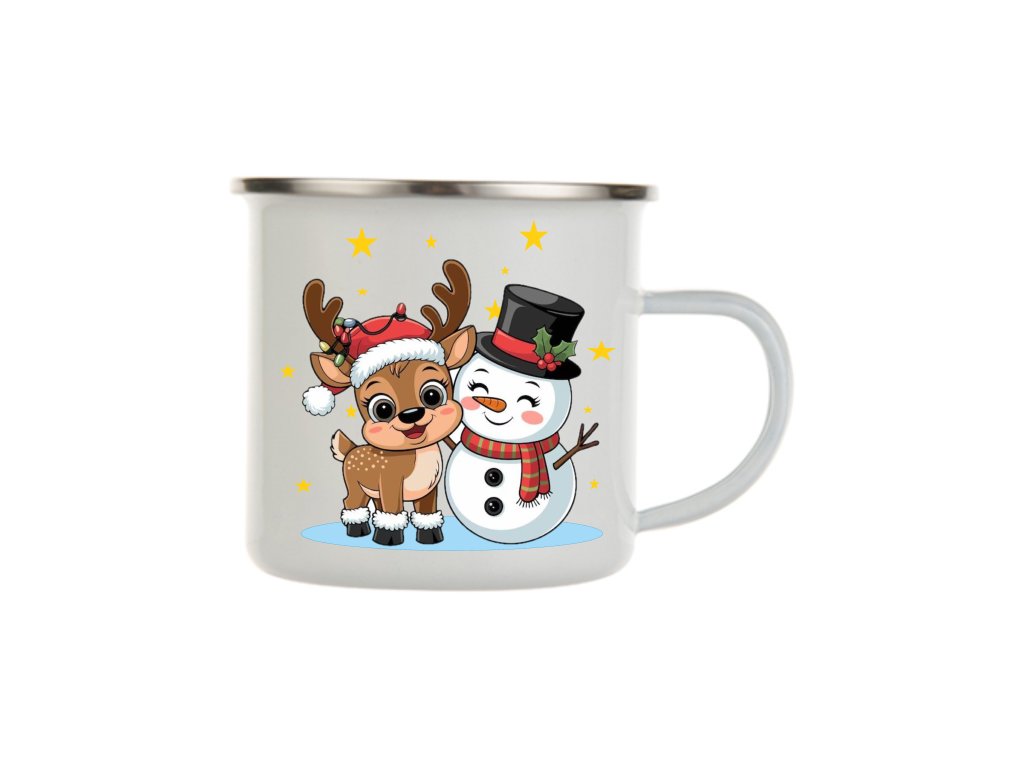Hrnek o objemu 350 ml je vyroben z kvalitního smaltovaného plechu, díky čemuž je lehký, odolný a stylový. Perfektní na zimní výlety, do práce, domů nebo jako dekorace na sváteční stůl.