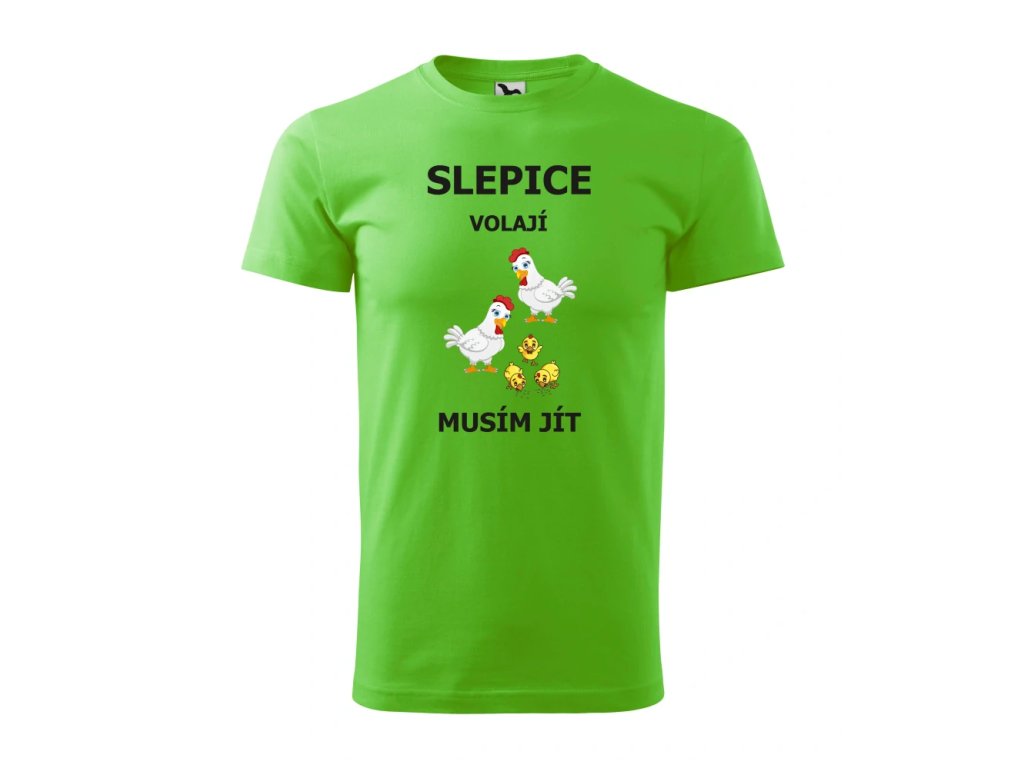 Tričko s potiskem "Slepice volají, musím jít" – pro každého hrdého chovatele!