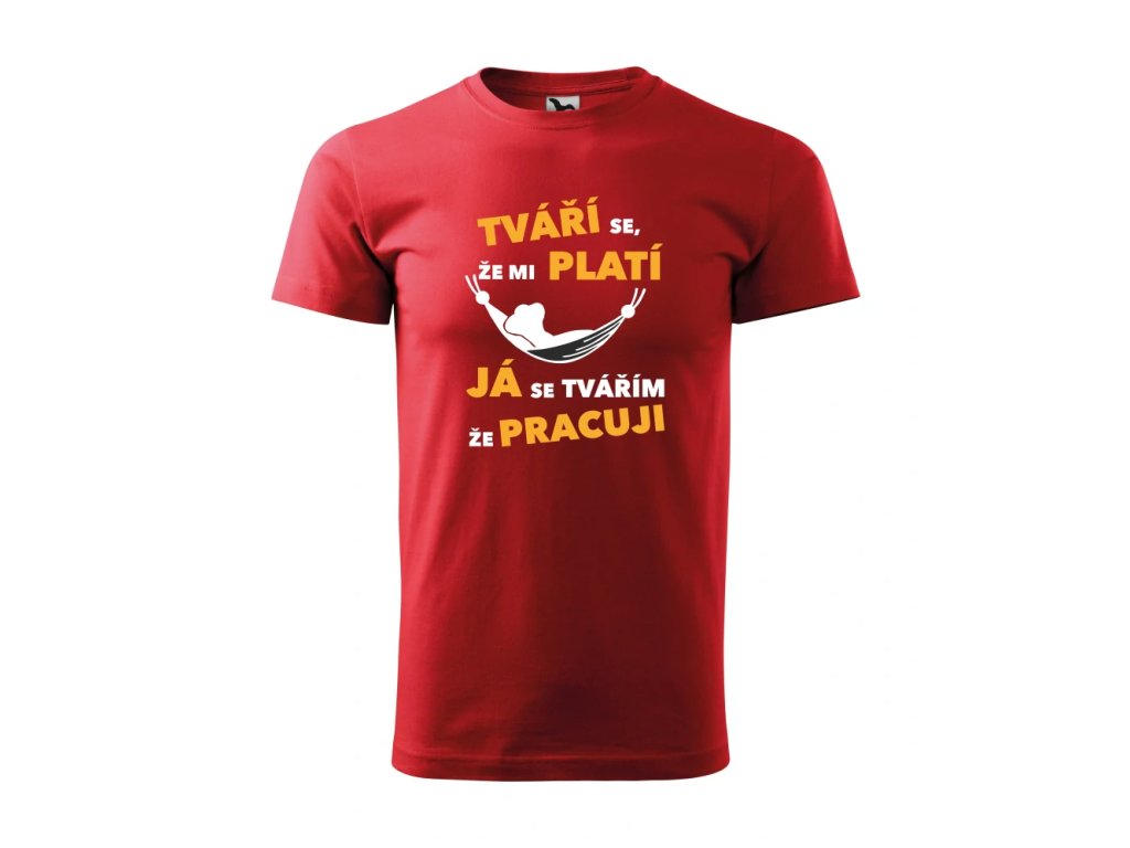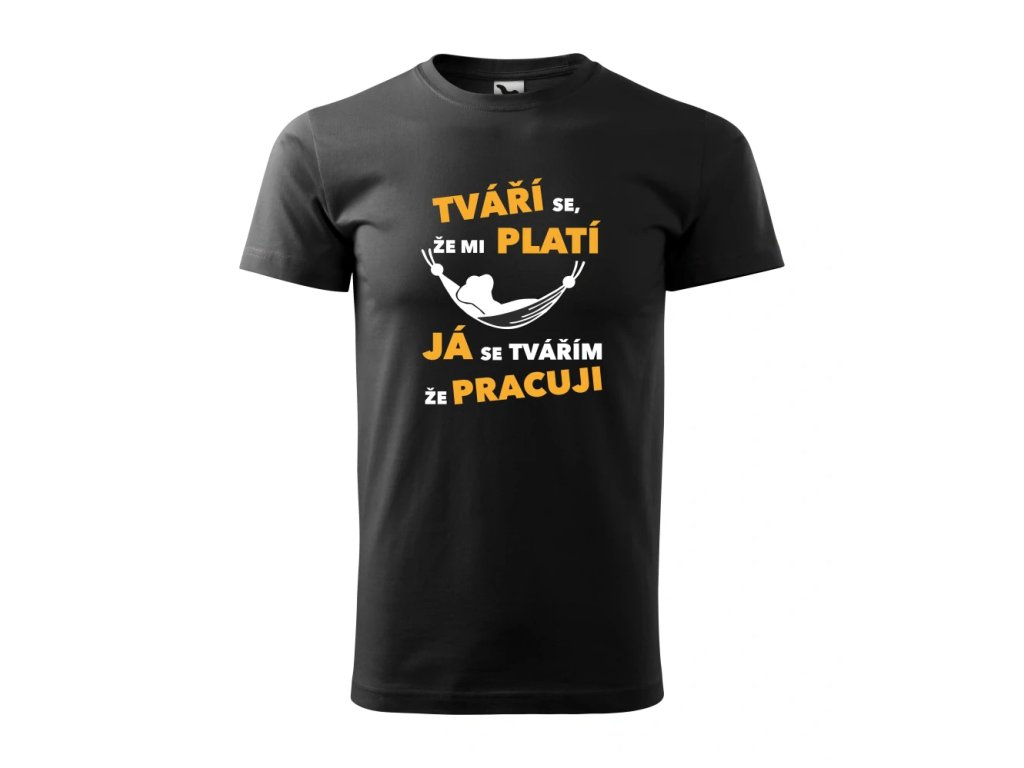 Pánské tričko s potiskem – „Tváří se, že mi platí – já se tvářím, že pracuji“