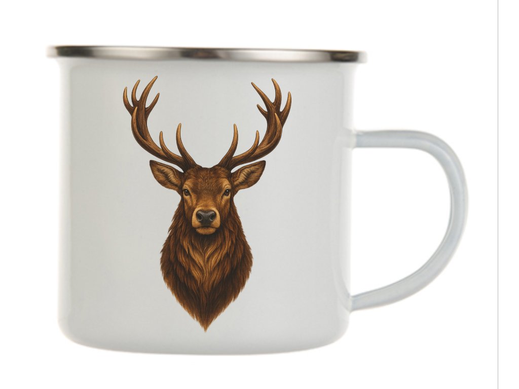 Tento vtipný plechový hrnek s jelenem je skvělým dárkem k narozeninám, Vánocům nebo k svátku. Potěší myslivce, táborníky, rybáře, i všechny, kteří milují klid lesa.